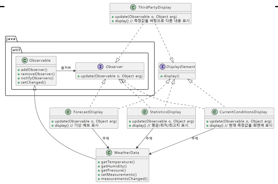 클래스 다이어그램의 모든 것을 구현한 것은 아니다. 옵저버 패턴에 대해 이해할 정도로만 알아두자!